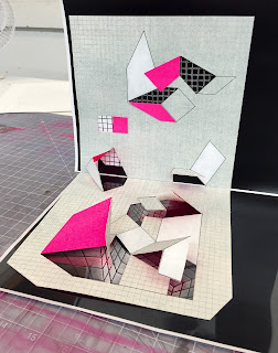 There are different "types of change" that I am interested in: entropic, topologic, geomorphic, cyber-, and sociologic. These types of change may take the form of planar ruins, elastic amoebas, growing networks, glitches, or blueprints and employ techniques such as collaging, layering, transparency, photocopying (esp. distorted), or origami…etc. The "rate of these changes" must also be considered in terms of layers and format. Timing is everything.